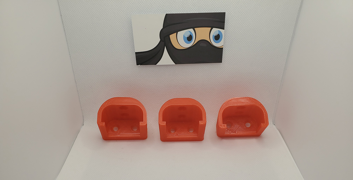 The mounts include four mounting holes for sturdy placement. The mounts can be used vertically or horizontally under a shelf depending your storage needs. By default this mount is printed with PLA+ filament at a high-resolution setting and with 30% infill to ensure superior support.
