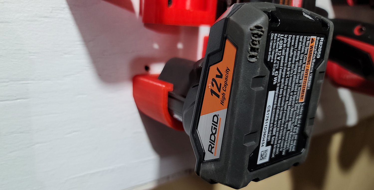 3D printed Tool mounts for Ridgid 12v Batteries.