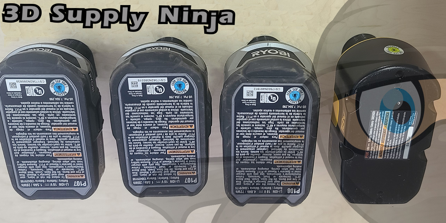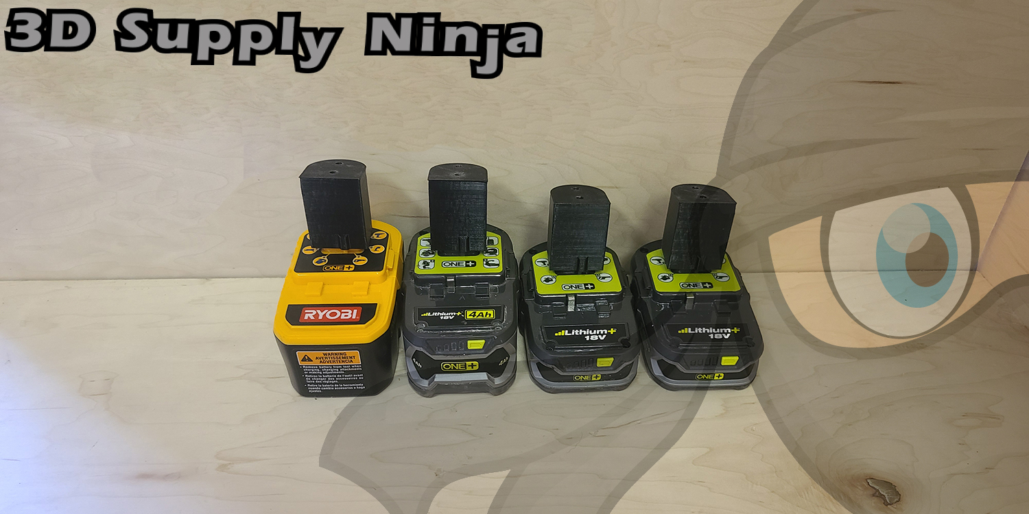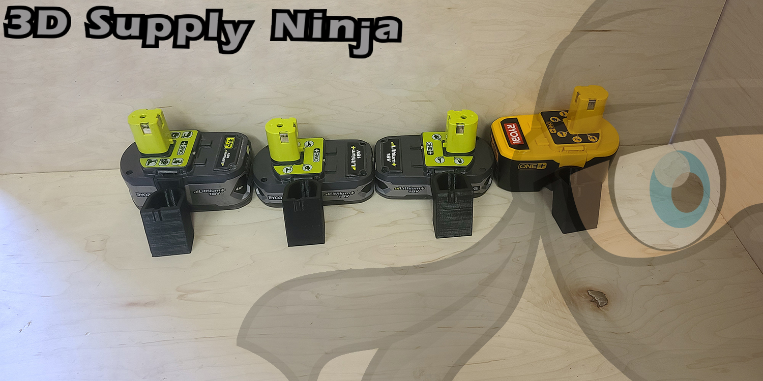 This mount design has been fully tested for proper fit with Ryobi One+ batteries. The images shown are the actual final product on the manufacturer’s hardware. The manufacturer is not affiliated to 3D Supply Ninja, LLC in any way. Their tool and battery packs are in the picture for demonstration purposes only.